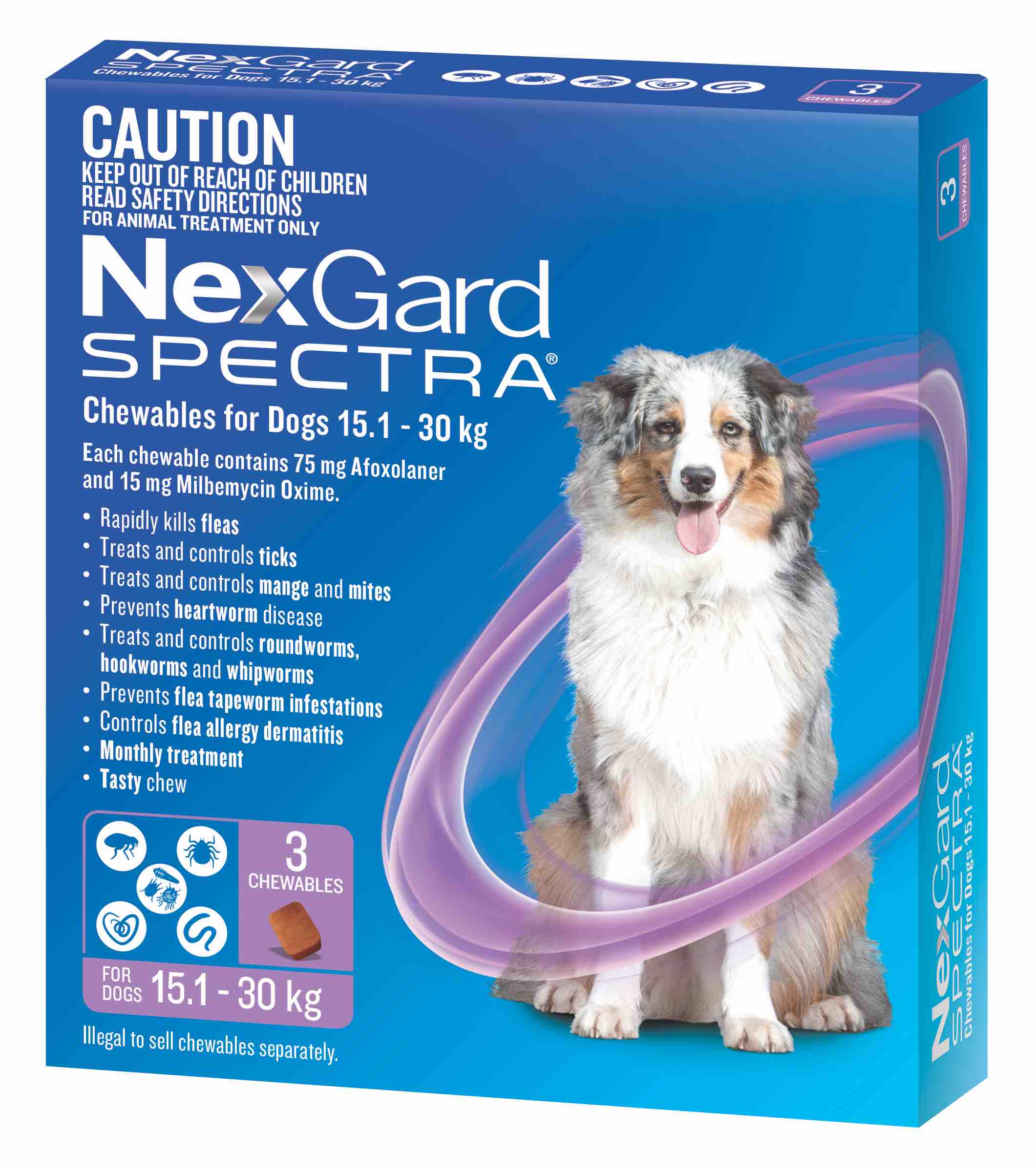 Remarque : NexGard SPECTRA ne protège pas contre le ténia hydatique. Parlez-en à votre vétérinaire si une protection complémentaire est nécessaire.